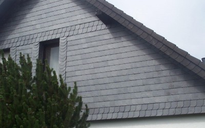 Verschieferung einer Giebelwandfläche mit Einarbeitung der Fenster